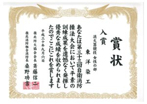 今年は消火器競技・女性の部で見事入賞を果たしました。