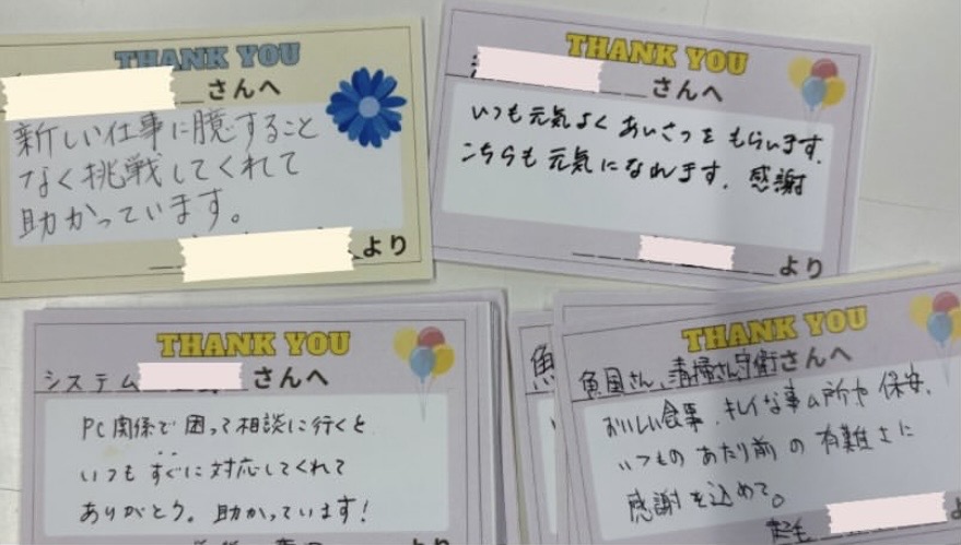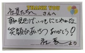 働く意欲と生産性向上を目指したいと思い『サンクスカード』を実施しました。